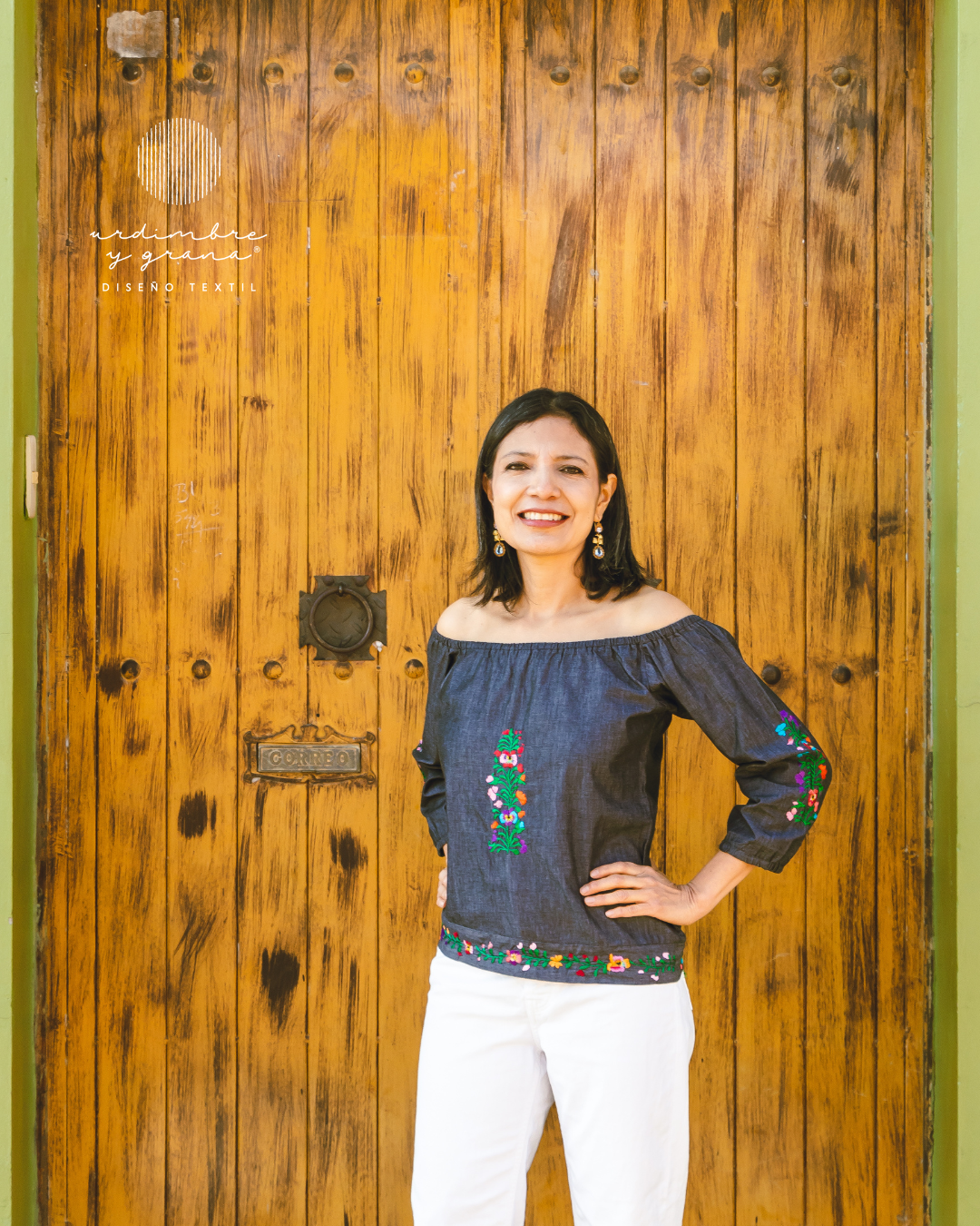 Blusa gris deshombrada, media manga, con terminación en diagonal con bordado de San José del Progreso, Oaxaca