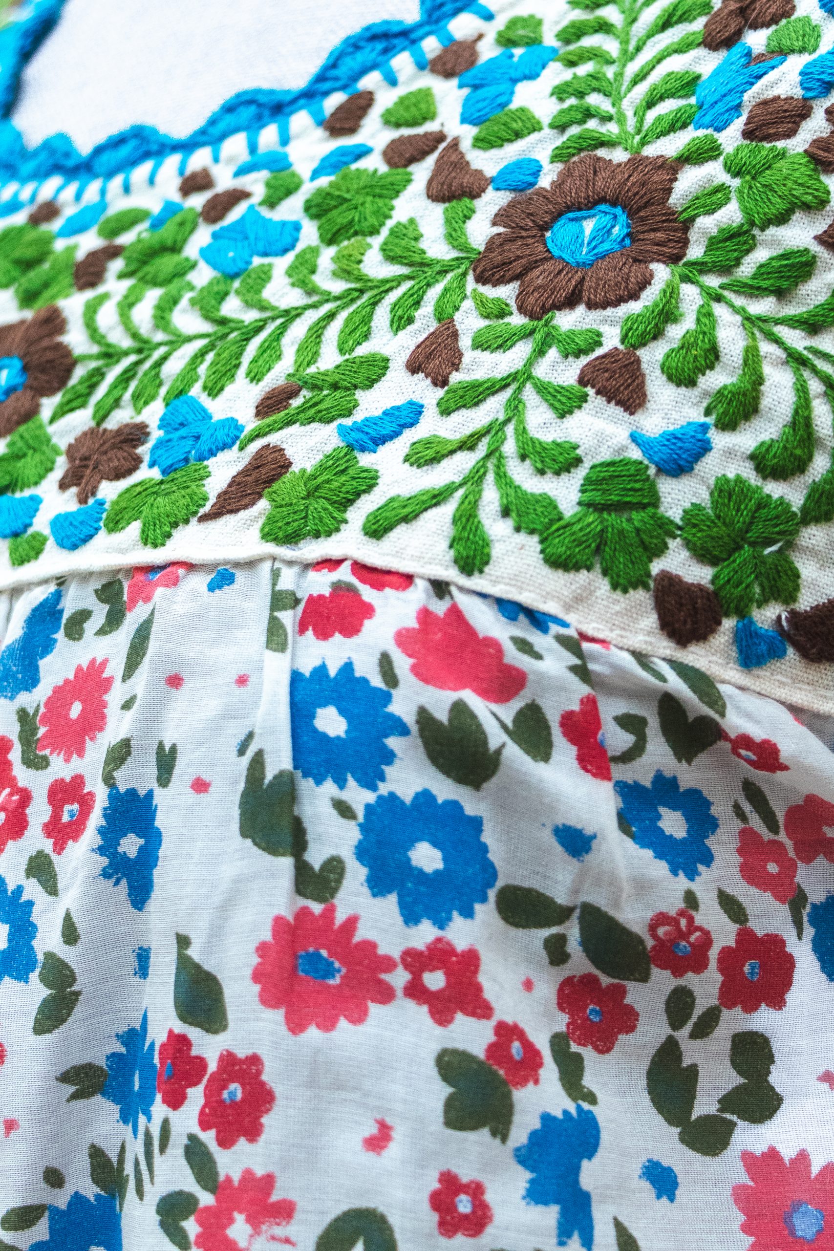Blusa elaborada con estampada y bordado a mano de San José del Progreso, Oaxaca